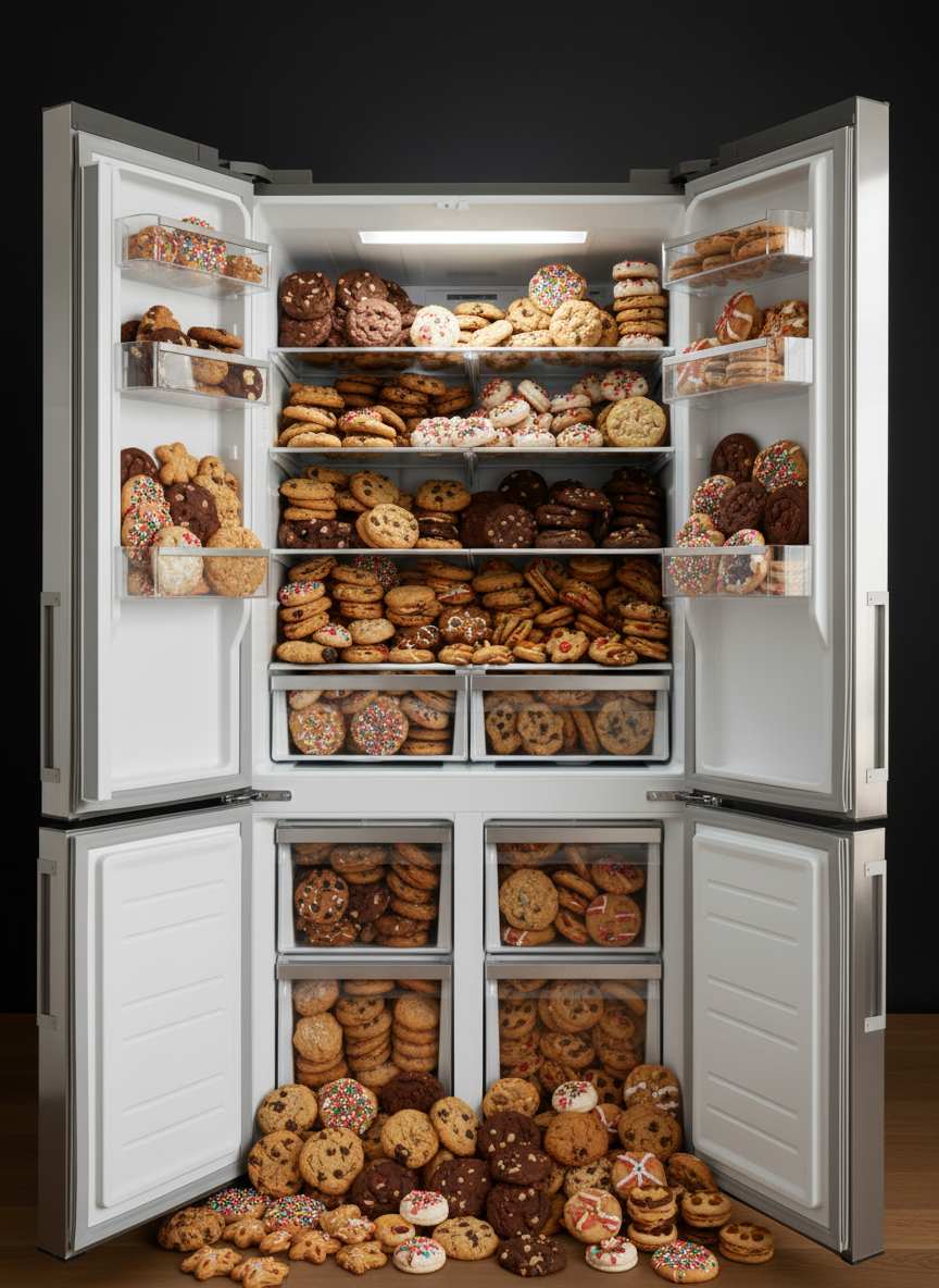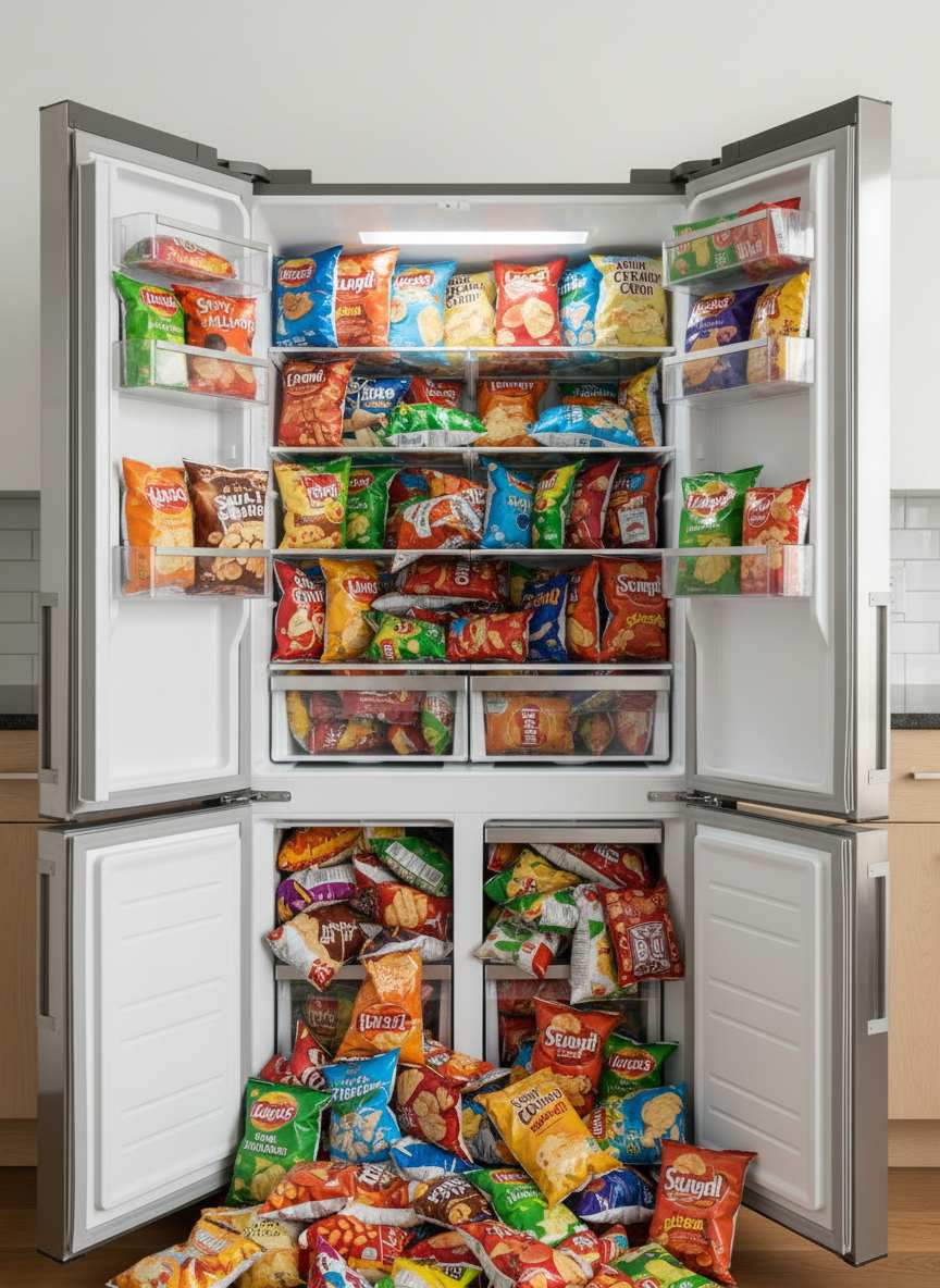 Cheerful Bursting One-Click Fridge Full Scene AI Image Generator