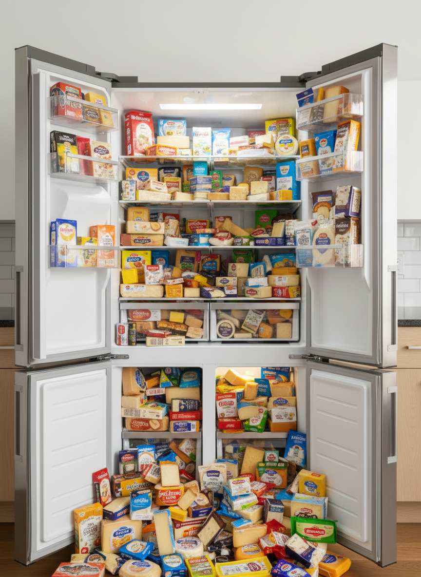 Click to Generate a Photo – Instantly Get a Stunning Artwork Similar in Style to "Cheerful Bursting One-Click Fridge Full Scene"