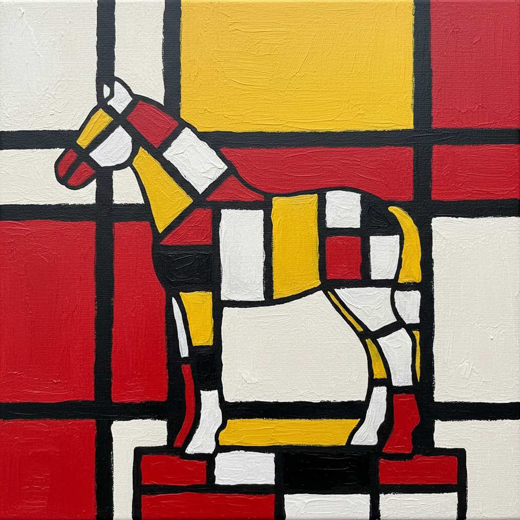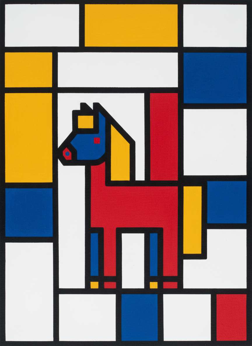 Click to Generate a Photo – Instantly Get a Stunning Artwork Similar in Style to "Colorful Abstract Mondrian-Style Little Pony Art"