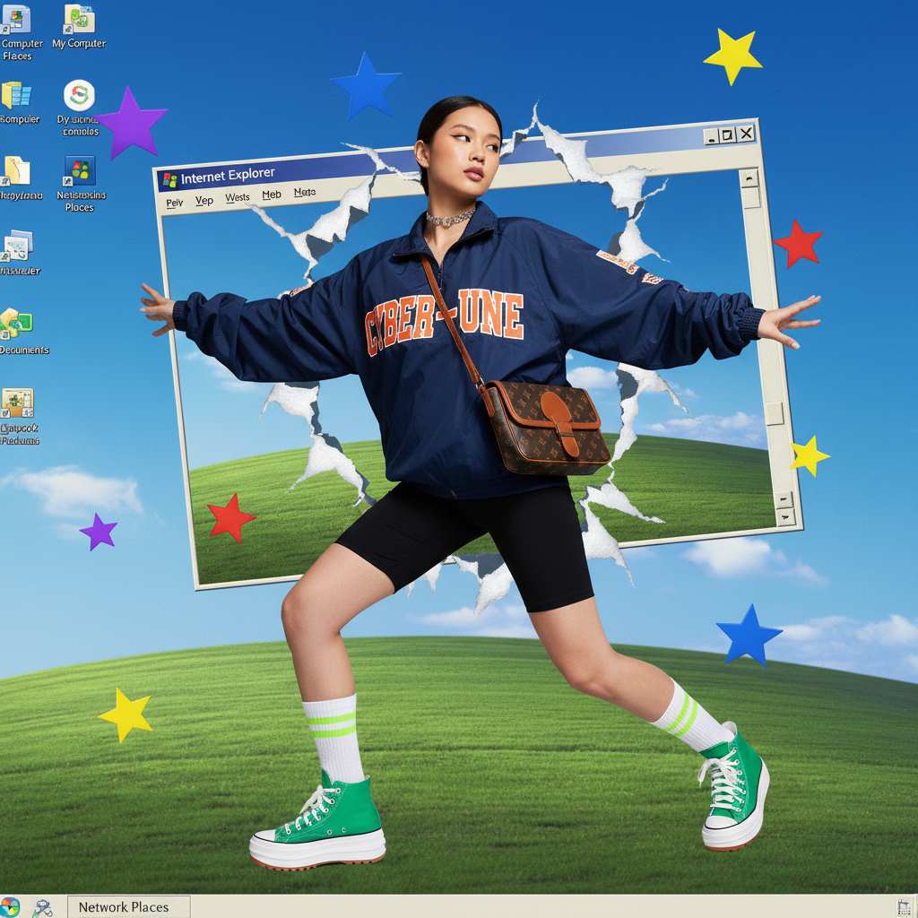 Click to Generate a Photo – Instantly Get a Stunning Artwork Similar in Style to "Nostalgic Edgy Cool Windows Pop-Up Portrait Design"