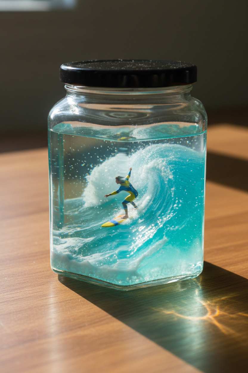 clear glass (round, square, tall thin, or wide-mouthed), colored glass (soft blue, amber, or frosted), or decorative bottles (with etched patterns or simple, minimalist designs). Customize closures too—cork stoppers, glass stoppers, or even tiny wax seals. The AI adapts the scene size and arrangement to fit the bottle’s dimensions, ensuring proportional harmony.