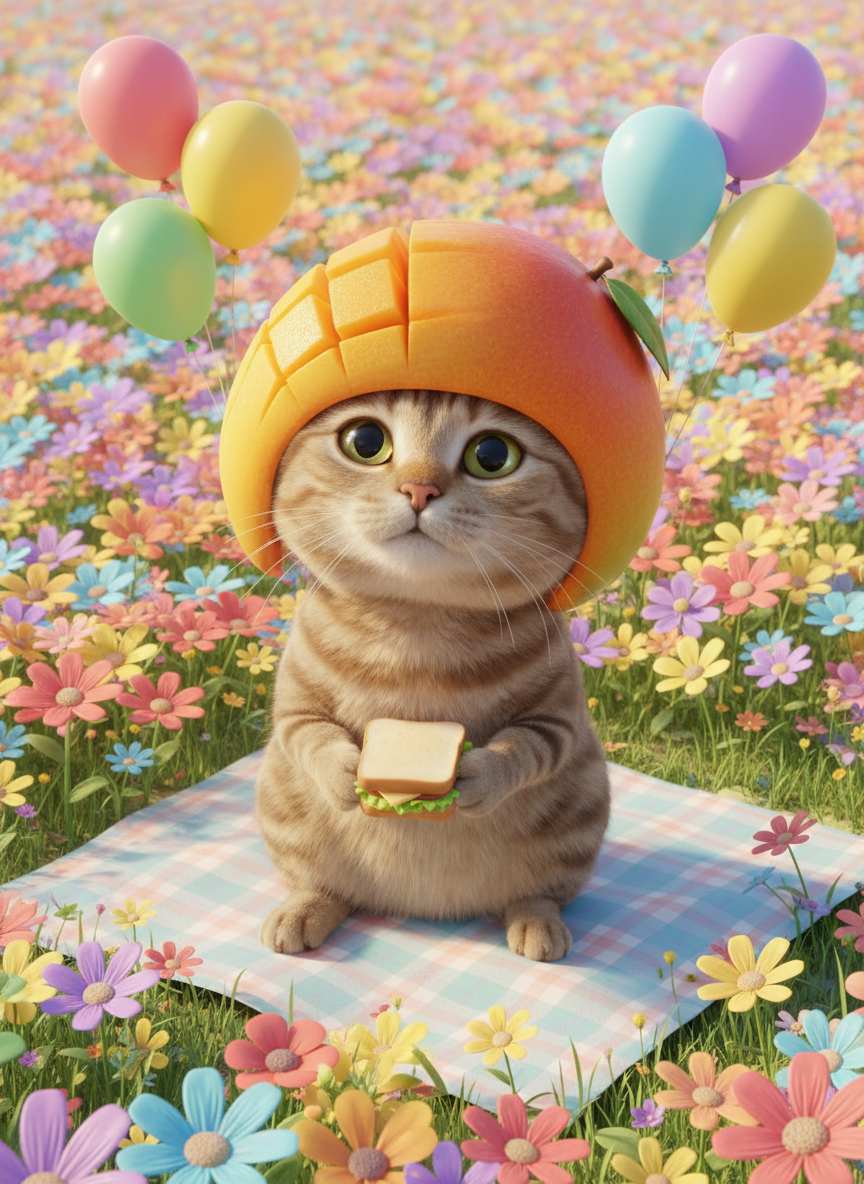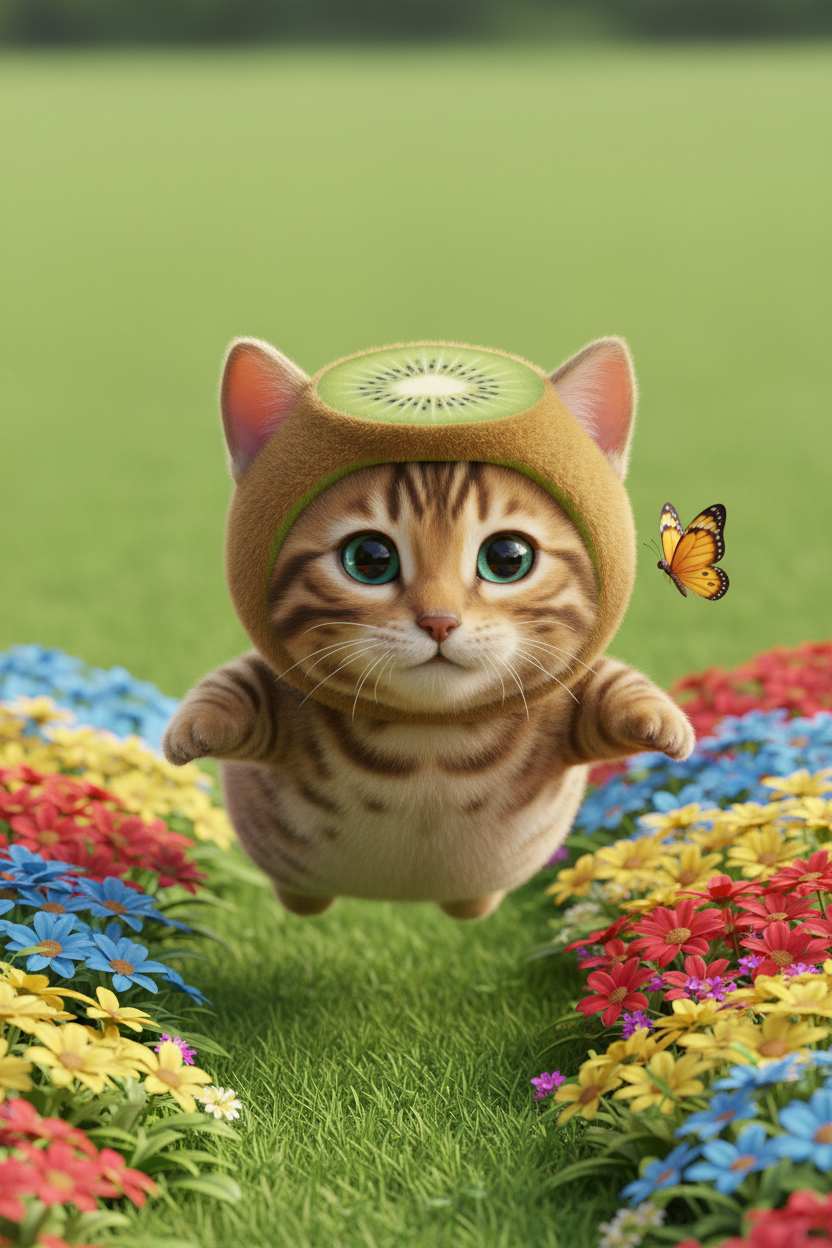 Click to Generate a Photo – Instantly Get a Stunning Artwork Similar in Style to "Fun Quick One-Click Pet Funny Fruit Headwear Edit"