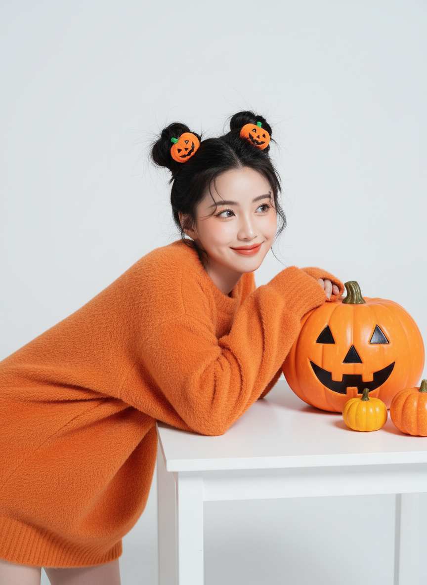 Festive Halloween Pumpkin Portrait Design AI Image Generator