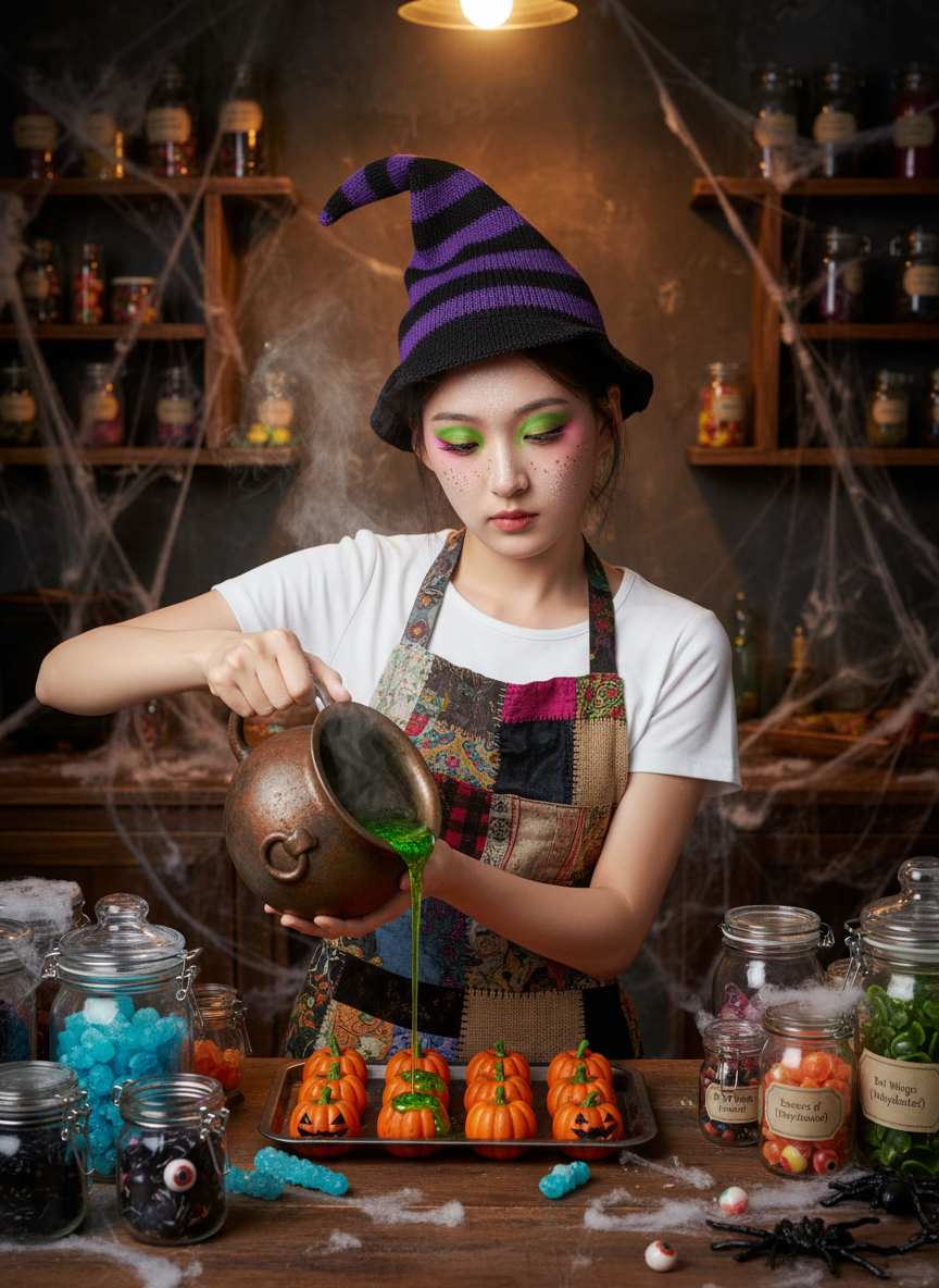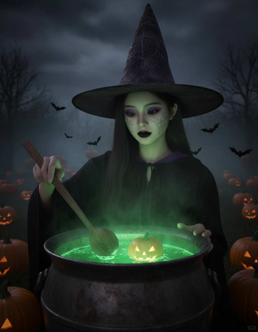 You can generate a wide range of witch aesthetics, including: Classic/Traditional: Green skin, warts, crooked nose, black hat and cloak Glamour/Modern Witch: Fashionable witch with stylish outfit, perfect makeup, elegant accessories Cute/Kawaii Witch: Chibi-style, friendly expression, pastel colors, adorable proportions Fantasy Witch: Elven features, mystical aura, intricate costume details Gothic Witch: Dark romantic style, Victorian elements, dramatic makeup Cosmic/Witchy Academia: Celestial themes, scholarly look, bookish aesthetic Humorous Witch: Goofy expressions, unexpected elements, playful situations