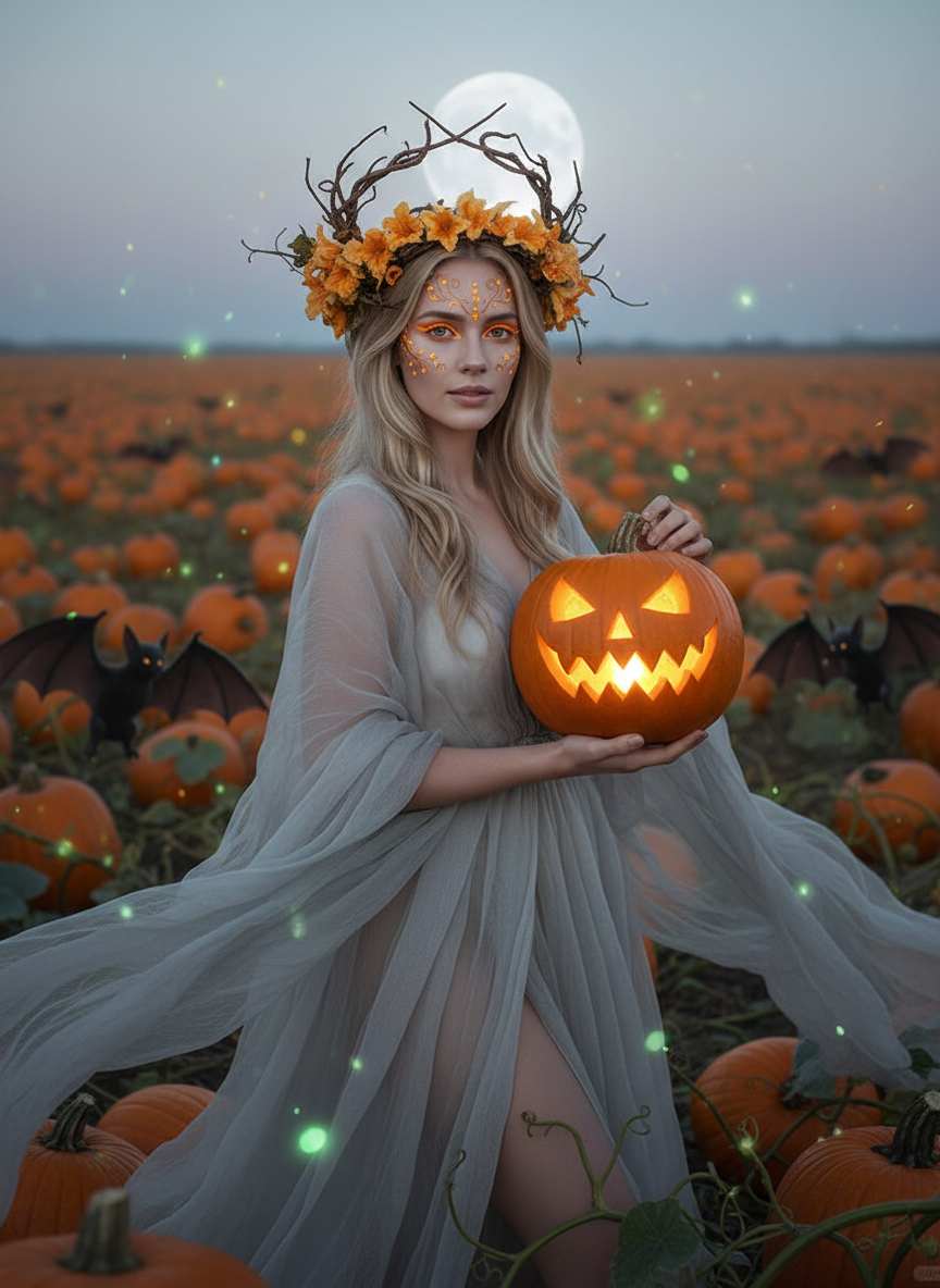 Click to Generate a Photo – Instantly Get a Stunning Artwork Similar in Style to "Eerie Magical Halloween Witch Portrait Design"