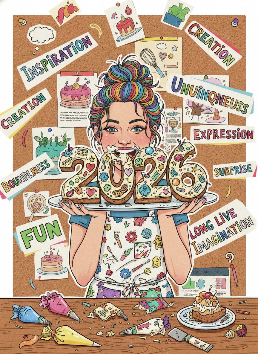 Cheerful Stylish New Year's Cake Poster Template AI Image Generator