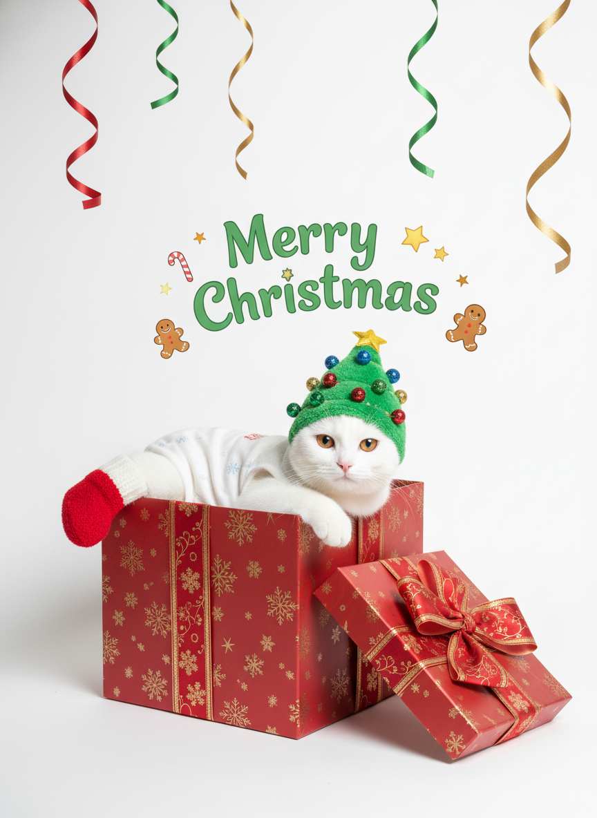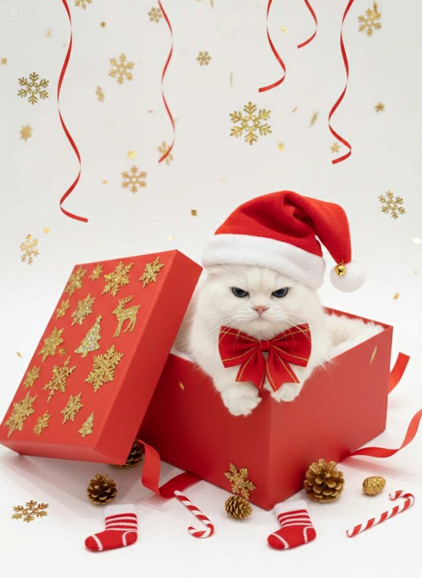 A Cute Festive Pet Christmas Gift Box AI Generator is a creative online tool that uses artificial intelligence to help you design personalized Christmas gift boxes for your pets. Simply input details about your pet—like their species, size, name, and favorite things—and the AI will generate unique gift box concepts complete with themed decorations, treat ideas, and toy suggestions that are safe and festive.