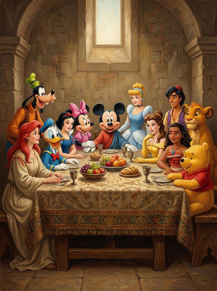 Yes. You can adapt the style (Renaissance realism, modern abstract, surrealist, pop art, or fantasy), update themes (futuristic, historical alternate, cultural reimaginings, or narrative twists), and add visual flourishes (glowing elements, symbolic tableware, or stylized robes). The AI retains the original’s core composition while integrating your creative twists, ensuring the reimagining feels cohesive and intentional.