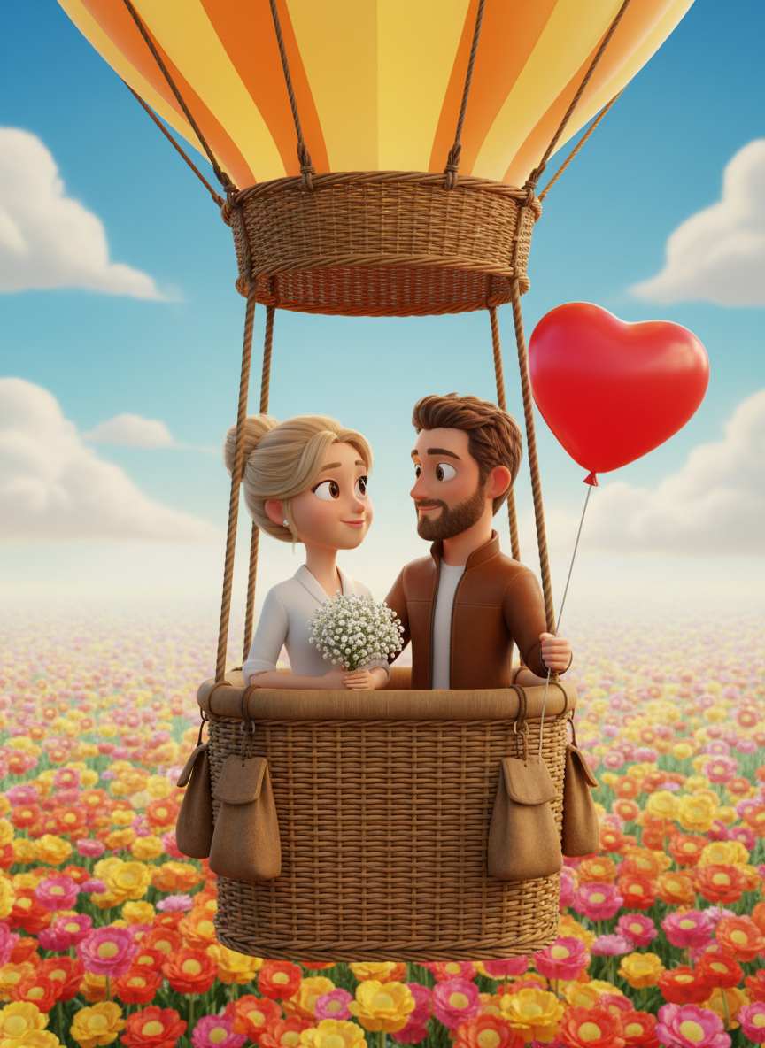 Yes. You can tailor couple’s appearance (hair color, clothing style, facial features, or even pet companions joining the couple), Valentine’s details (roses, heart balloons, love letters, custom messages, or heart-shaped backdrops), and 3D cartoon style (ultra-cute chibi 3D, soft realistic 3D, playful cartoon 3D, or minimalist 3D). The AI adjusts the design to match—e.g., a chibi 3D style will have extra-rounded characters, while a soft realistic 3D style will feature more detailed facial expressions, all paired with Valentine’s romance.