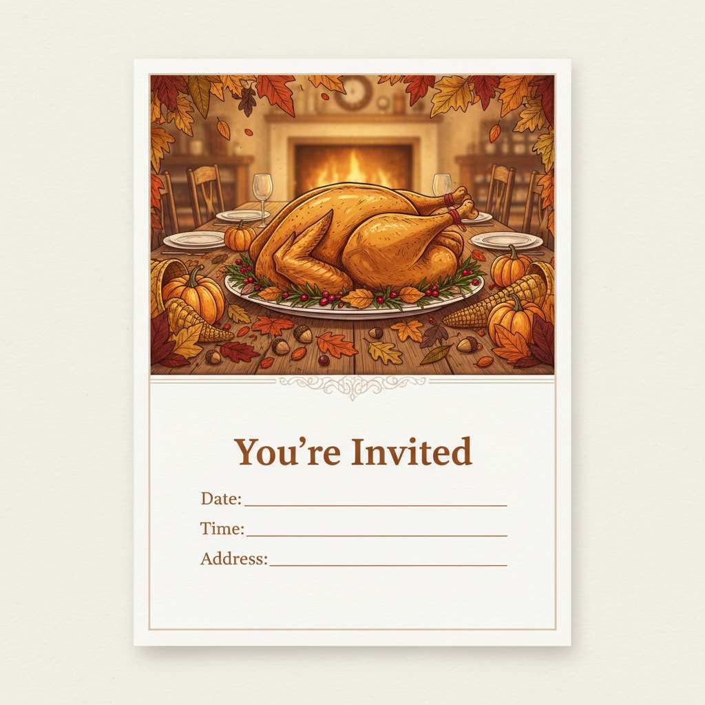 Click to Generate a Photo – Instantly Get a Stunning Artwork Similar in Style to "Warm Festive Thanksgiving Invitation Card Design"