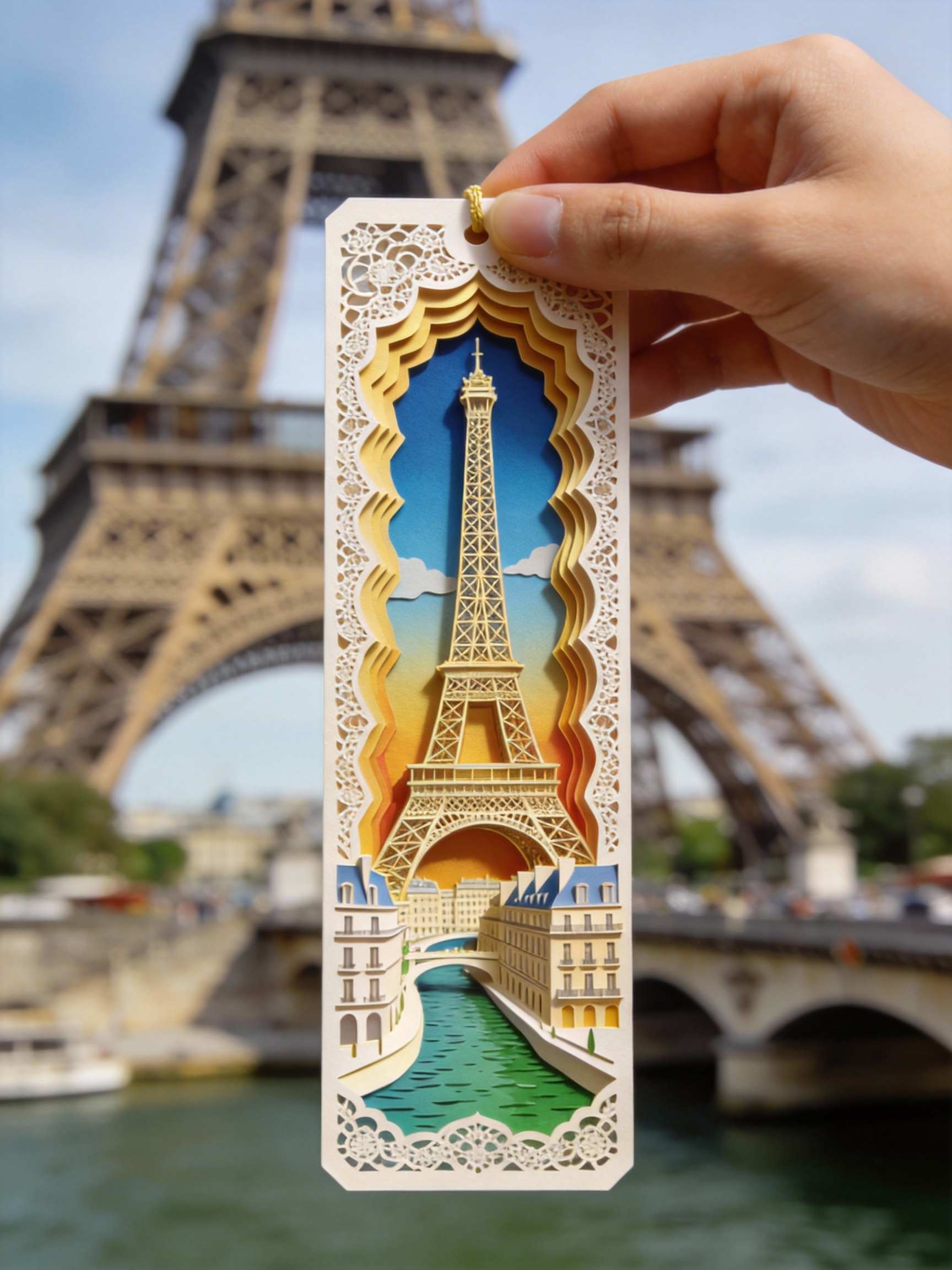 Core elements include authentic landmark details (faithful reproduction of a landmark’s iconic architecture, colors, and distinguishing features—e.g., the Eiffel Tower’s lattice structure or the Statue of Liberty’s torch), practical bookmark design (standard slim profile, print-ready dimensions, and a functional shape that fits seamlessly between book pages), one-click usability (a pre-formatted, complete design generated instantly with zero input), customization flexibility (adjustable details for personalization), and clean visual balance (landmark art integrated without overcrowding the bookmark’s surface). The overall design is functional yet visually striking, merging landmark charm with everyday bookmark practicality.