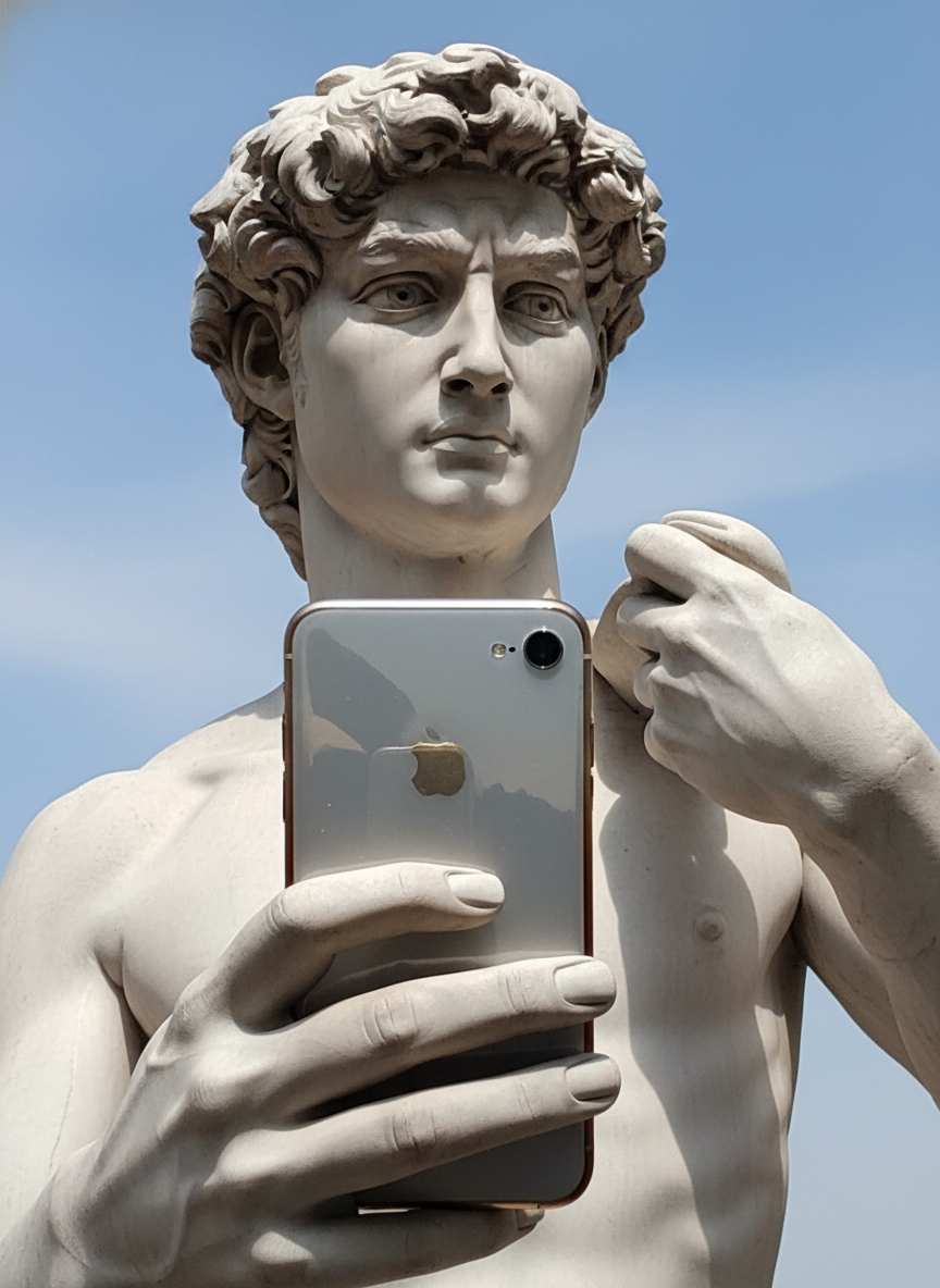 Whimsical Creative Famous Sculpture Taking a Selfie Design GALLERY